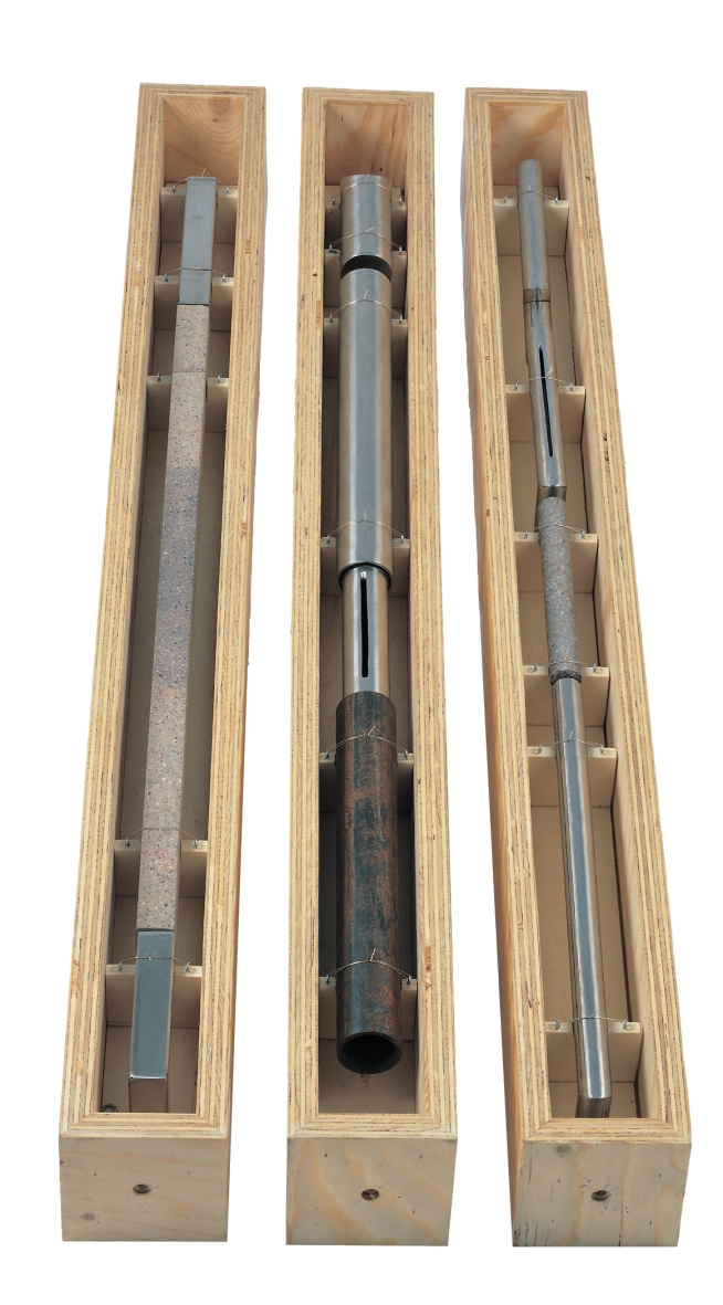 aufbewahrung 1-3 -1997- holz, stahl, granit je 110 x 10 x 10 cm |